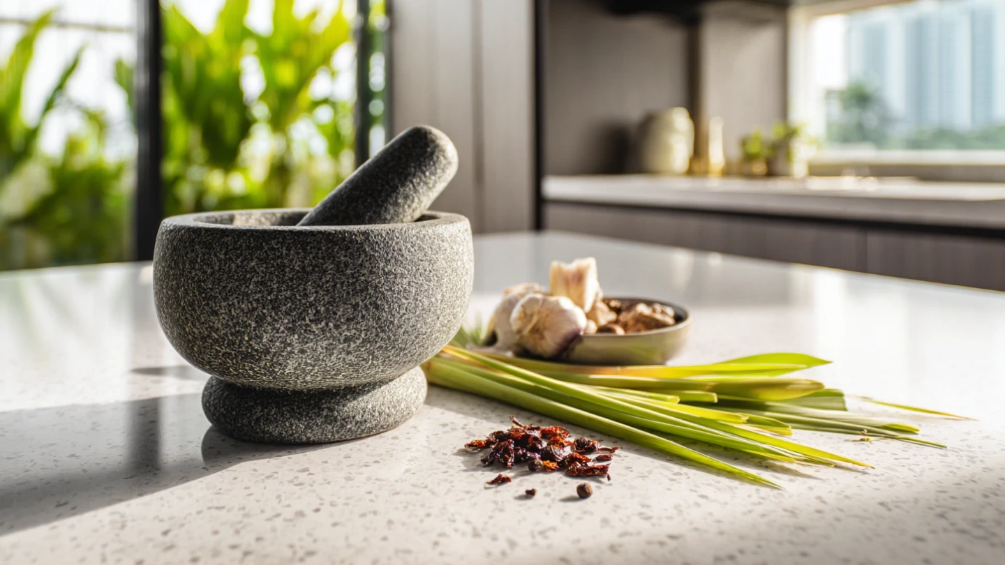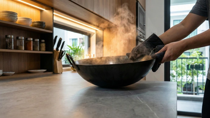Consistent colour, non-porous, zero maintenance. The reliable all-rounder for Malaysian kitchens — from family homes to rental-ready renovations.