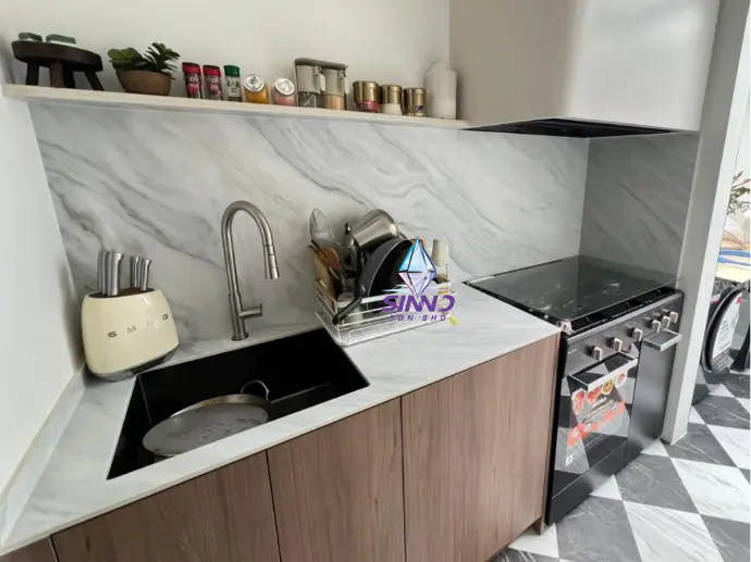 She knew the benefits of using Caesarstone in Singapore. After migrating to Malaysia, she looks for us to supply and install Caesarstone 5100 Vanilla Noir for her dry and wet kitchen.