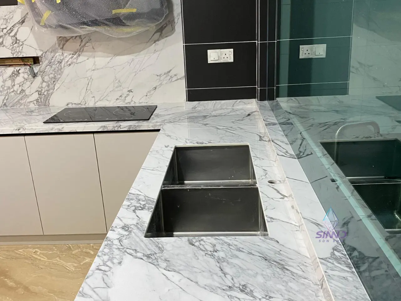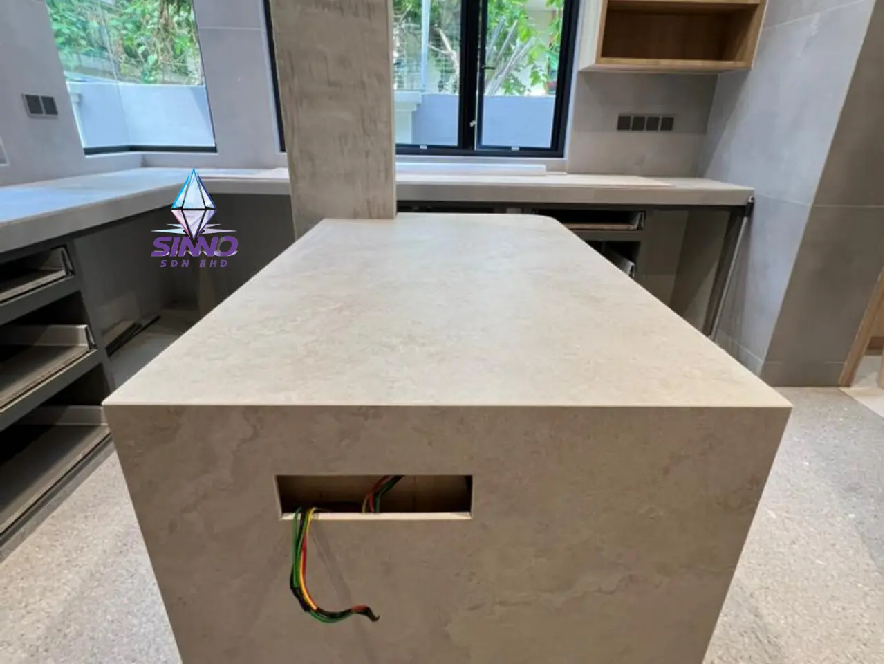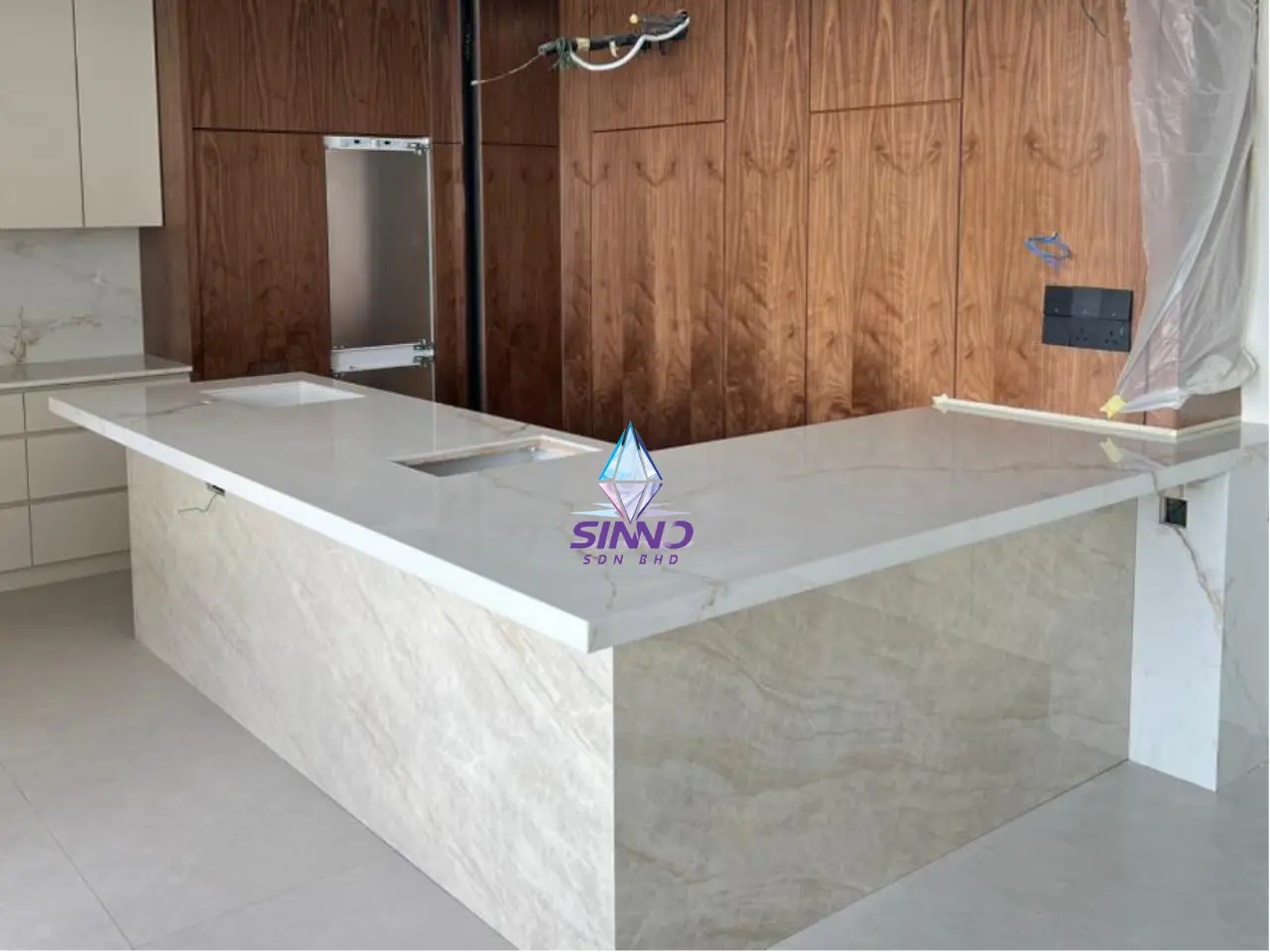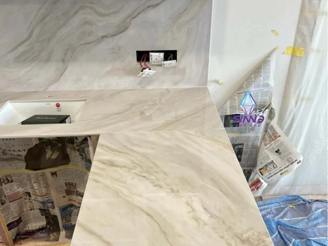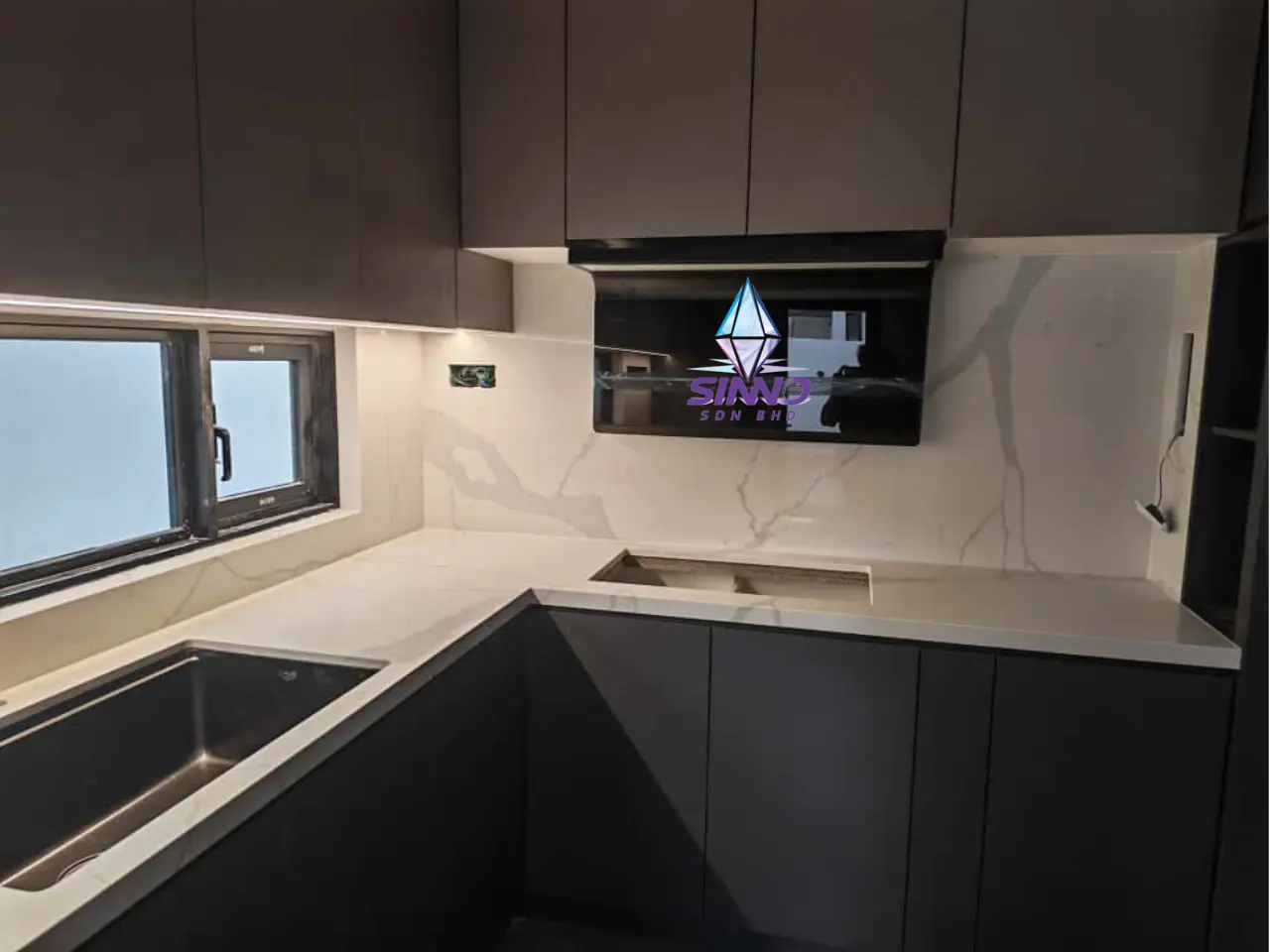 Transform your kitchen with heat-resistant, stain-resistant stone countertops engineered for Malaysian cooking. From modern quartz to ultra-durable sintered stone, we deliver quality installation backed by manufacturer warranties.